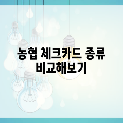 여러분은 다양한 체크카드 중 어떤 것을 선택할지 고민하고 계신가요? 체크카드는 일상 생활 속 필수 아이템으로 자리 잡고 있는데요, 특히 농협 체크카드는 다양한 종류와 혜택으로 많은 사랑을 받고 있어요. 이번 포스팅에서는 농협 체크카드 종류 비교를 통해 여러분이 가장 적합한 카드를 선택할 수 있도록 도와드릴게요.