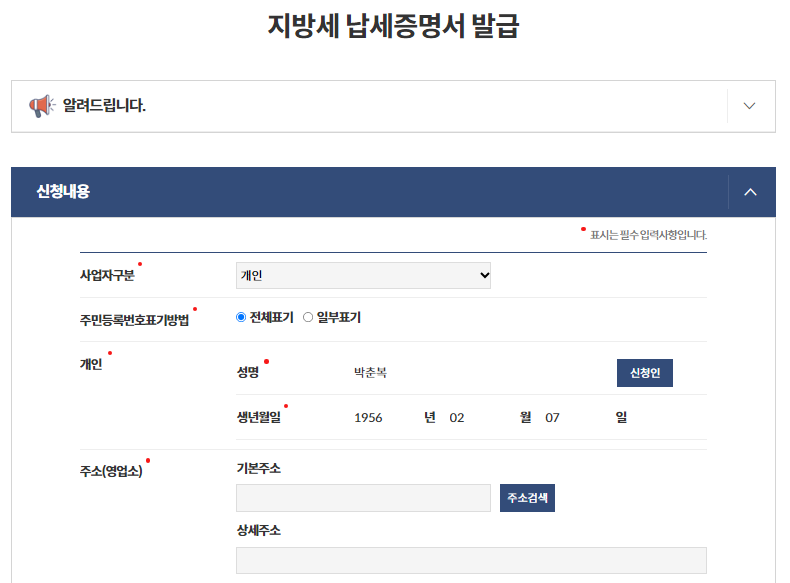 지방세 납세증명서 발급 시 유의사항