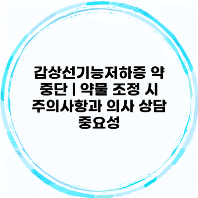 갑상선기능저하증 약 중단 | 약물 조정 시 주의사항과 의사 상담 중요성