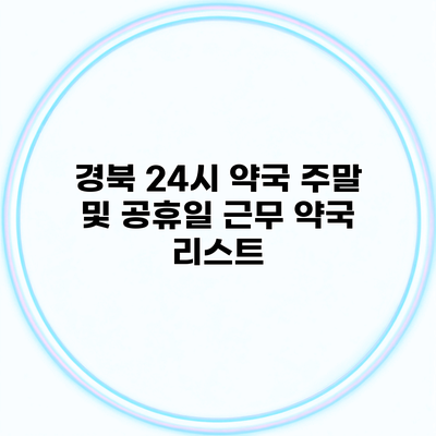 다음은 경북 지역의 24시 약국 리스트입니다. 각 약국의 주소와 연락처도 함께 제공하니, 필요할 때 유용하게 활용하세요.