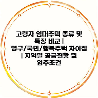 고령자 임대주택 종류 및 특징 비교 | 영구/국민/행복주택 차이점 | 지역별 공급현황 및 입주조건