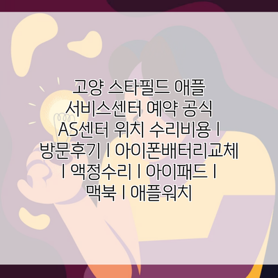 ✅ 고양 스타필드 애플 서비스센터의 자세한 위치와 예약 방법을 확인해 보세요.