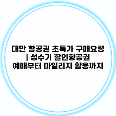 대만 항공권 초특가 구매요령: 성수기 할인과 마일리지 활용 방법