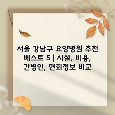 요양병원을 선택하는 것은 인생에서 가장 중요한 결정 중 하나일 수 있어요. 특히 서울 강남구처럼 다양한 의료 서비스가 제공되는 지역에서는 더욱 그렇답니다. 여기에서는 강남구 내에서 추천할 만한 요양병원 베스트 5곳을 소개할게요. 이 글을 통해 시설, 비용, 간병인 서비스, 면회 정보 등을 비교해보며, 가장 적합한 요양병원을 선택하는 데 도움을 드리겠습니다.