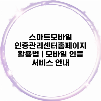 스마트모바일 인증관리센터홈페이지 활용법과 모바일 인증 서비스 안내