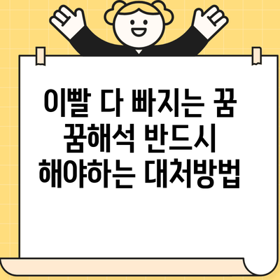 이빨이 빠지는 꿈은 우리 무의식이 전하는 메시지일 수 있어요. 이러한 꿈을 꾼 후에는 자신의 심리 상태를 점검하고, 다양한 대처 방법을 통해 긍정적인 변화를 모색하는 것이 중요해요. 이 꿈을 통하여 자신의 마음을 이해하고, 필요한 조치를 취하는 것이 중요해요.