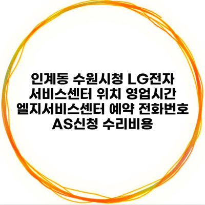 ✅ 인계동 LG전자 서비스센터의 위치와 영업시간을 자세히 알아보세요.