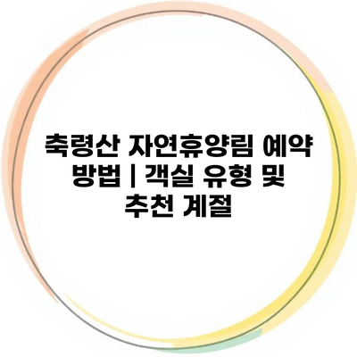 자연과 함께하는 휴식을 계획하고 있다면, 축령산 자연휴양림이 딱 좋은 선택이에요. 이곳은 아름다운 자연경관과 함께 다양한 편의시설을 제공하여 편안한 휴양을 즐길 수 있는 장소랍니다. 이제 축령산 자연휴양림에 대해 자세히 알아보고 예약 방법과 객실 유형에 대해 설명하도록 할게요.